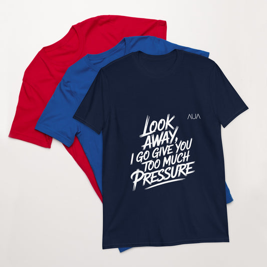 AUA® Look Away, I Go Give You Too Much Pressure (White Text) Short-Sleeve Unisex T-Shirt